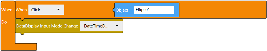 データ表示器入力モードの変更ブロックを追加し、DateTimeDisplay1 を選択します。