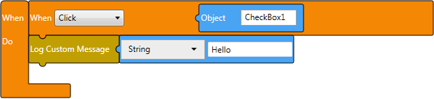 →チェックボックスオブジェクトをクリックすると、定数ブロックフィールドに入力されたメッセージが操作ログファイルに記録されます。