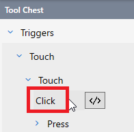 Triggers, such as Touch, Periodic/Schedule, and Conditional, take the form of a function. If a trigger requires parameters, pass them as function parameters.