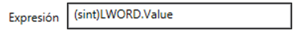 Utilice la conversión de tipos para convertir el tipo de datos. El siguiente es un ejemplo de una expresión válida, donde la variable LWORD se convierte a una variable SINT: