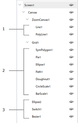 1 : Liste d’objets sous l’objet de disposition (ZoomCanvas1).