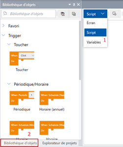 Dans la [Bibliothèque d'objets], faites glisser et déposez le script dans l'éditeur de scripts.
