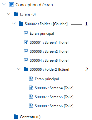 En créant des dossiers à l'intérieur des dossiers, vous pouvez changer d'écran dans une structure d'écran hiérarchique.