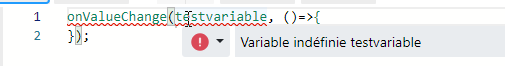 Lorsqu'une variable non définie est utilisée dans un script, passez le curseur de la souris sur la variable.