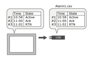 Vous pouvez utiliser cette opération de script pour exporter le journal d'alarmes vers un fichier CSV ou TXT.