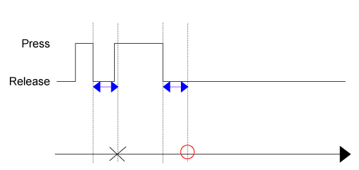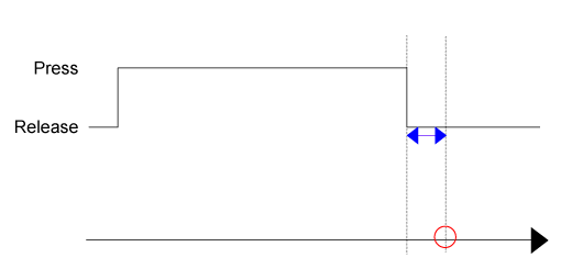 Si les déclencheurs [Press] et [Release] sont spécifiés sur le même objet et que l'objet est relâché avant que le délai [Press] s'écoule, le déclencheur [Release] est exécuté mais non pas le déclencheur [Press].