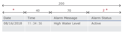 L’oggetto Riepilogo allarmi mostra i dati dell’allarme direttamente dal database degli allarmi (registro) o dal database degli allarmi (attivo).