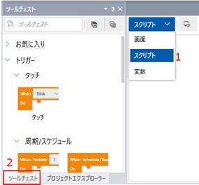 [ツールチェスト] からスクリプトをスクリプト編集画面にドラッグアンドドロップします。