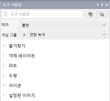 [도구 서랍장]은 프로젝트에 추가할 개체와 블록을 선택할 수 있는 컨텍스트 기반 창입니다.
