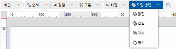 • [도형 병합] 기능은 다음 화면/콘텐츠에서 작동하지 않습니다.