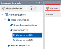 Explorador de projeto : [GrupodeAlarmes1] ➞ [Alarme de bool]