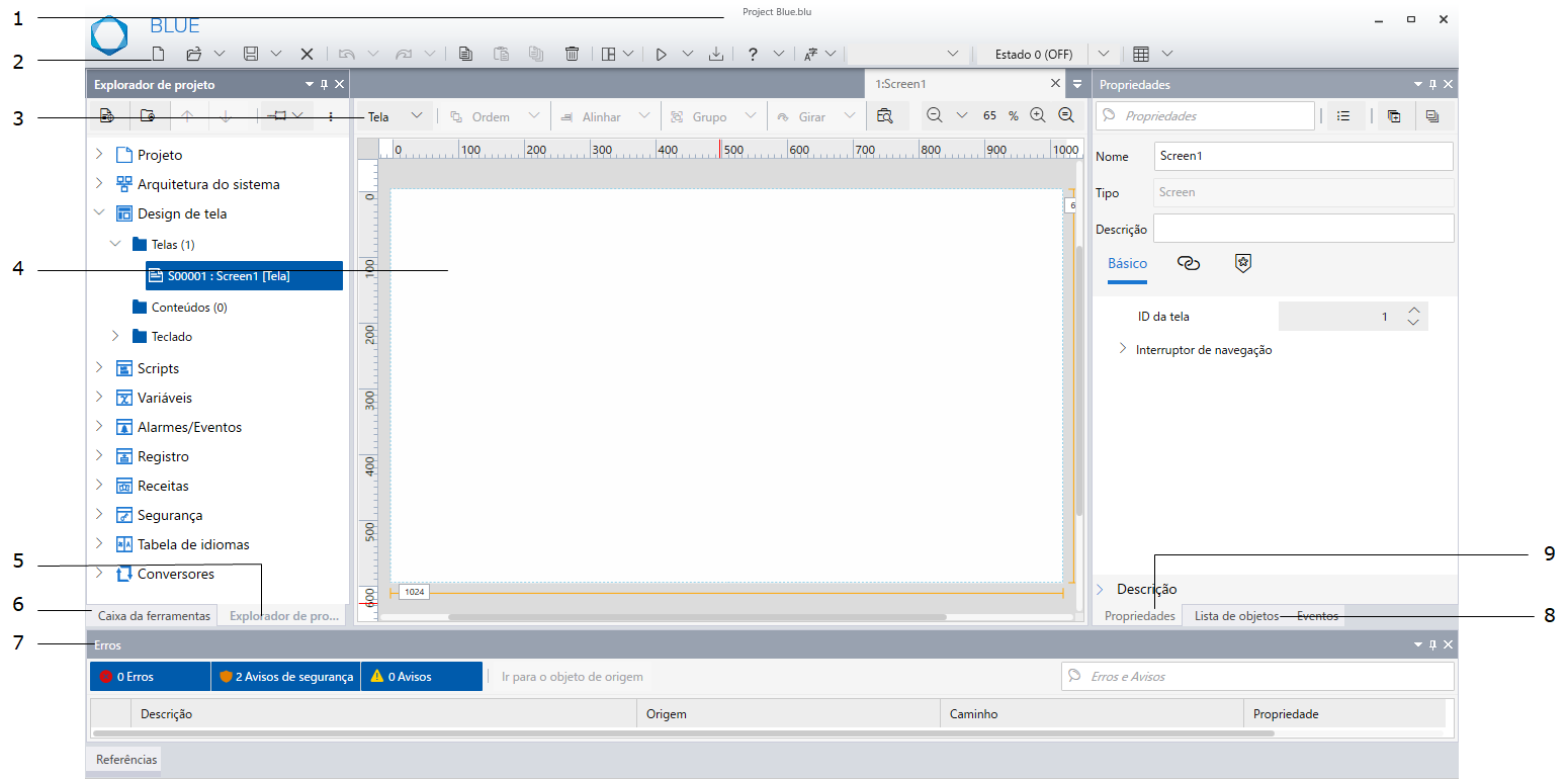 | 1 | [Barra de título] | Exibe o nome do projeto. |