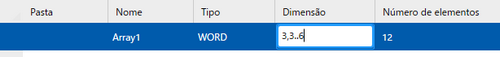 Para uma matriz multidimensional, no campo [Dimensão], especifique o número de elementos em cada dimensão, separados por uma vírgula (,).