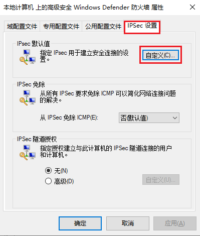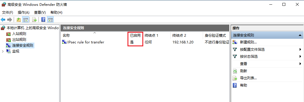 配置 IPsec 之前,请启用 Windows Defender 防火墙。配置防火墙需要管理员权限。有关更多信息,请参阅 Windows 帮助。