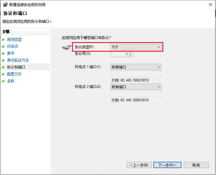 | [端点2] | 选择[这些 IP 地址:]并添加人机界面的 IP 地址。 |