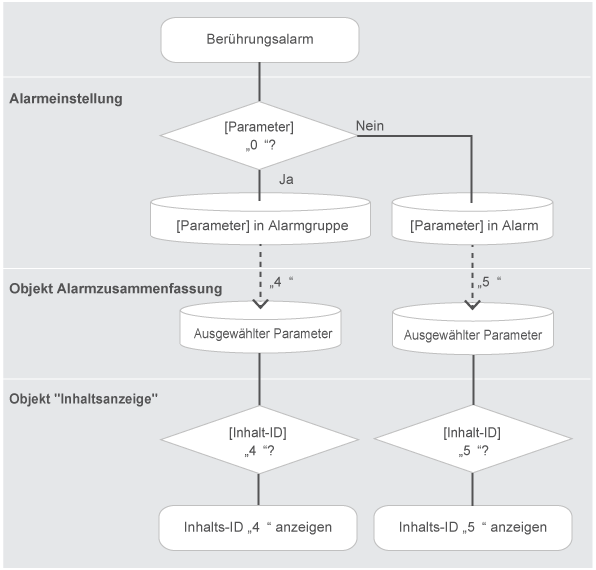 Bei Berühren eines Alarms kommt es zu folgendem Ablauf.