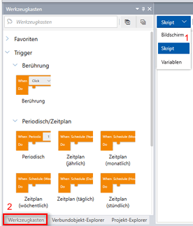 Bewegen Sie das Skript vom [Werkzeugkasten] per Drag&Drop in den Skript-Editor.