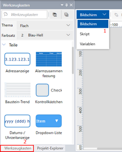 Bewegen Sie folgende Objekte vom [Werkzeugkasten] per Drag&Drop auf den Bildschirm.