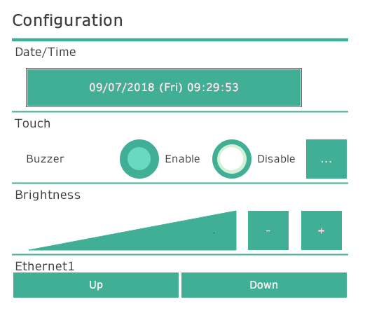 In the screen editing software, if [Display Hardware Configuration] is disabled you cannot use touch gestures to display the Hardware Configuration screen. To be able to display Hardware Configuration while in this state, draw a Hardware Configuration object on a screen or content. Without the ability to display the Hardware Configuration screen, you may not be able to run Ethernet transfer.