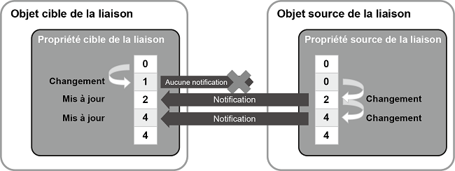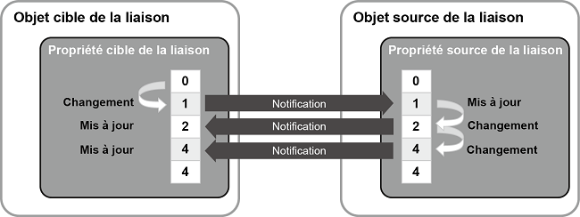 La liaison de données vous permet de choisir la direction dans laquelle les valeurs de propriété sont reflétées entre la cible de liaison et la source de liaison.