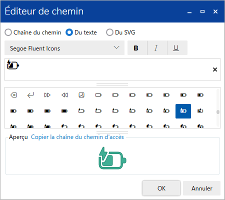 Cliquez sur l'icône pour ouvrir l'[Éditeur de chemin]. Concevez l'objet de chemin à l'aide d'une chaîne de chemin ou de texte. |