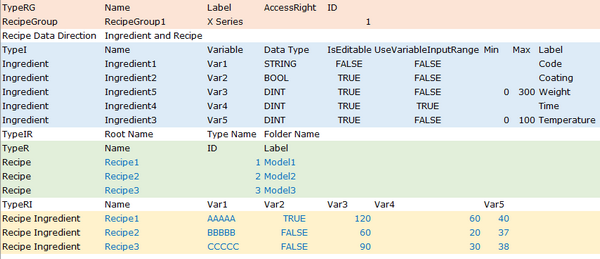 Type de données défini en tant que variable. si vous exportez des données de recettes contenant des variables avec les types de données suivants, le type de données de la variable est remplacé.
