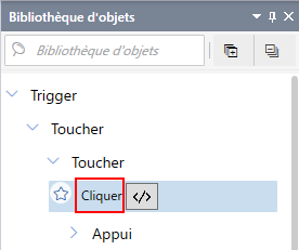 Dans la bibliothèque d'objets, cliquez sur </> pour voir la syntaxe du script associé.