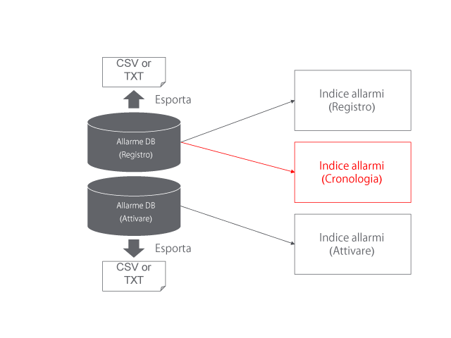 nella vista [Cronologia], il numero massimo di righe nell’oggetto riepilogo degli allarmi è 4000.