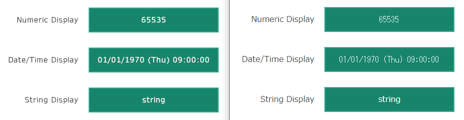 Sul client, la parte Visualizzazione numerica e la parte Visualizzazione data/ora utilizzano gli stessi font reciprocamente, mentre la parte Visualizzazione stringa usa font diversi.