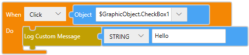 → Quando si fa clic sull'oggetto CheckBox, viene registrato il messaggio immesso nel campo del blocco Costanti nel file del registro operazioni.