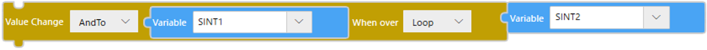 Blocco![]() TestochangeValue($Enums.WhenOver.Loop, $Enums.AssignmentOperator.AndTo, SINT1, SINT2); |