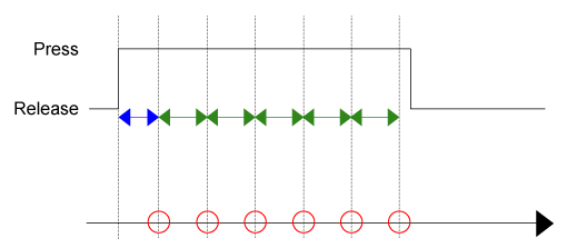 Se per lo stesso oggetto sono stati specificati entrambi i trigger [Press] e [Release] e se l’oggetto viene rilasciato prima che sia trascorso il tempo di ritardo di [Press] il trigger [Release] viene eseguito, ma non il trigger [Press].