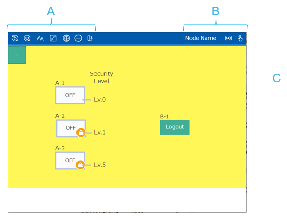 クライアントからサーバーに最初に接続したときは、監視モードになります。監視モードは、誤った画面のタッチ操作を防ぐことができる閲覧用のモードです。