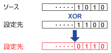 | [XOR] | [ソース] で指定した整数またはソースプロパティと、[設定先] で指定したソースプロパティの間の XOR (排他的論理和) 値を書き込み、結果を設定先のソースプロパティにコピーします。 ![]() |
