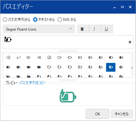 アイコンをクリックして [パスエディター] を開きます。パス文字列またはテキストを使用してパスオブジェクトをデザインします。 |