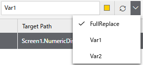 ソースプロパティに変数を選択し、検索フィールドに 「Var *」 と入力すると、検索結果には 「Var」 で始まる変数のソースプロパティ参照項目が表示されます。