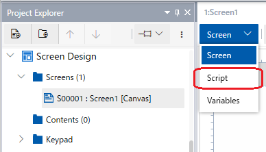 画面/コンテンツの設定で [スクリプト] をクリックしてスクリプトを設定します。