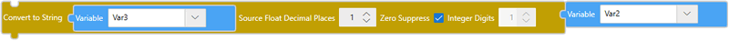 [Source Data] の実数を [Source Float Decimal Places] で指定した小数点以下の桁数までを文字列に変換し [Destination Data] に格納します。