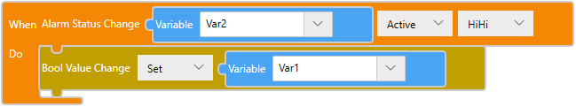変数 Var2 を割り当てたアラームが発生すると Var1 が ON になります。