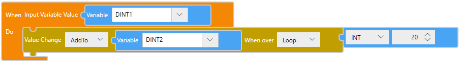 [変数値を入力] トリガーと接続されたブロックにスレーブデバイスドライバー以外の同じ外部変数を割り当てると、接続されたブロックから入力値ではなく現在値が参照される場合があります。