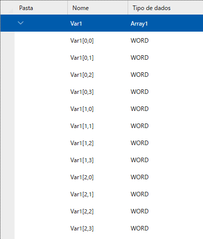 Uma matriz multidimensional é uma matriz que contém outras matrizes. Por exemplo, uma matriz que contém duas matrizes DINT é uma matriz bidimensional.