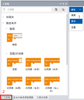 [工具箱]中将脚本拖放到脚本编辑器。