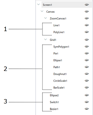 1:布局对象 (ZoomCanvas1)下方的对象列表。