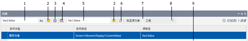 使用 [引用] 窗口,可以搜索工程或复合对象中指定源属性或文本的实例。然后可以使用[引用]窗口替换源属性或文本。