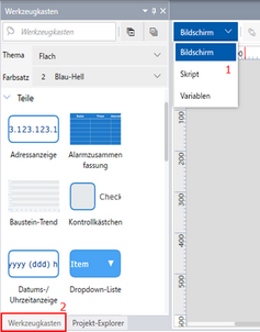Bewegen Sie folgende Objekte vom [Werkzeugkasten] per Drag&Drop auf den Bildschirm.