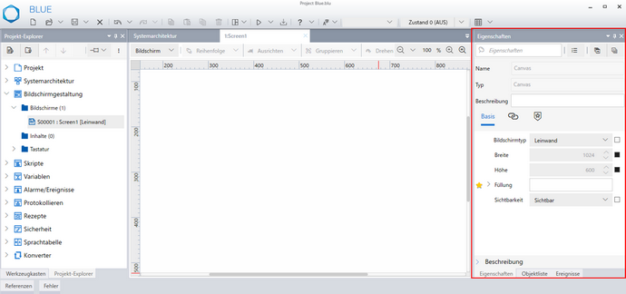 Richten Sie im Fenster "Eigenschaften" Elemente ein, die im [Projekt-Explorer], Bildschirmen und Eigenschaften der auf dem Bildschirm abgelegten Objekte ausgewählt wurden.