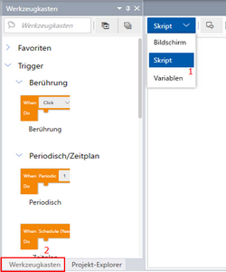 Bewegen Sie das Skript per Drag&Drop vom [Werkzeugkasten] in den Skript-Editor.