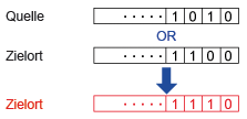 | [OR] | Schreibt den OR-Wert (logische Summe) der in der [Quelle] definierten Ganzzahl oder Quelleigenschaft und der im [Ziel] angegebenen Quelleigenschaft und kopiert das Ergebnis in die Zielquelleigenschaft . ![]() |