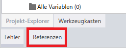 . Durch Klick auf das Symbol wird die Suche gestartet, gefolgt von einer Auflistung der Suchergebnisse im Fenster [Referenzen].