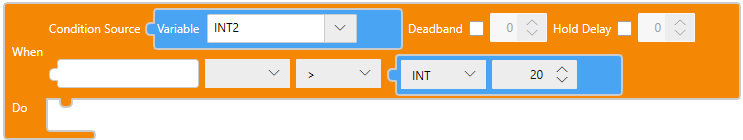 onCondition(Var1 > 20,{enableDelay:false,enableDeadband:true,delayValue:0,deadBandValue:5}, ()=>{